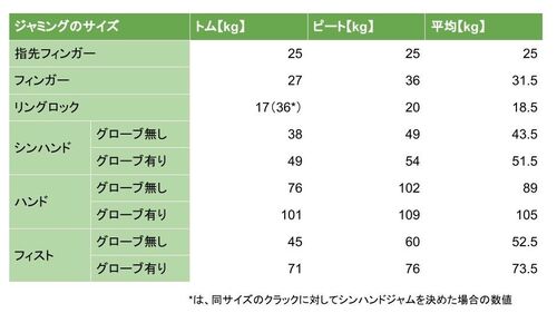 ワイドボーイズとして活動しているクラッククライマーのトム・ランドールとピート・ウィタカーが、面白い実験をしていたので紹介します。色々なジャミングについて、何kgの加重に耐えられるかを測定するものです。 クラッククライミングをやった事がない人に…